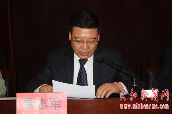 县委副书记贾志军宣读《民和县创建民族团结进步先进区实施方案》