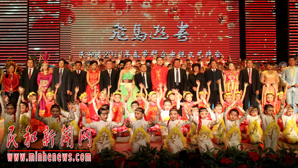 晚会在一曲歌伴舞《祝福海东》中圆满落下帷幕。演出结束时,县四大班子领导走上舞台亲切慰问演出人员并留影。