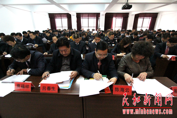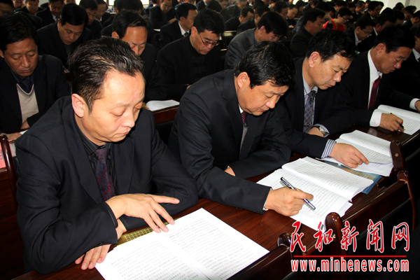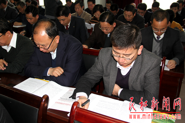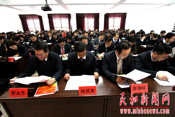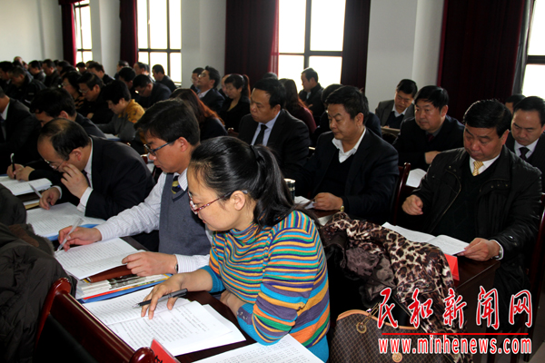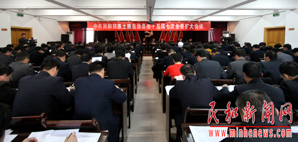 1月28日,中国共产党民和回族土族自治县第十五届委员会第七次全体委员扩大会议在县政府五楼会议室召开。会议的主要任务是,深入贯彻落实党的十八届三中全会、省委十二届五次全体会议和市委一届二次全体会议精神,回顾总结2013年工作,研究分析当前形势,谋划部署2014年工作,动员全县上下统一思想,凝聚共识,全面深化改革,促进转型跨越,谱写青海东部门户建设新篇章。民宣摄
