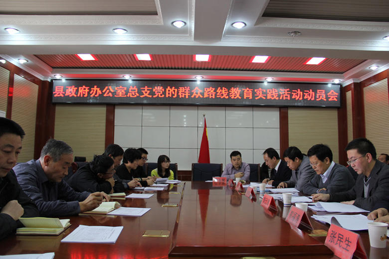 会议指出,开展党的群众路线教育实践活动,是党中央坚持党要管党、全面从严治党作出的重大决策部署,是凝聚发展力量的必然要求,是改进工作作风的迫切需要,是做好“三服务”的重要保障。会议强调,政府办公室作为政府的参谋部、协调部和联络部,在活动中,要按照“照镜子、正衣冠、洗洗澡、治治病”的总要求和中央、省、市、县委的总体部署,紧紧围绕保持党的先进性和纯洁性,以为民务实清廉为主要内容,以从严执行作风禁令为切入点,以党总支及班子成员和党员为重点对象,着力解决好关系群众切实利益的重大问题,提高新形势下“三服务”工作能力。同时,从深刻认识开展教育实践活动的重要性、必要性和紧迫性;准确把握开展教育实践活动的总体要求、重点任务和主要环节;加强对教育实践活动的组织领导,确保协调高效、有序开展三方面严格要求办公室全体党员和干部,以诚实、求实、唯实、扎实的作风,深入开展好党的群众路线教育实践活动,更好地为县委、县政府中心工作服务,起好参谋助手作用。