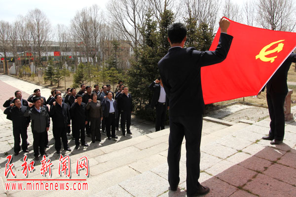 参观结束后,大家来到纪念馆后方的中国第一个核武器研究基地纪念碑前,举行了重温入党誓词宣誓活动。面对耸立的纪念碑和鲜红的中国共产党党旗,前来参观学习的党员领导干部高举右手,紧握拳头,齐声重温入党誓词,铿锵恢宏的誓词,再一次深刻体会作为一名共产党员的神圣责任和庄严使命。