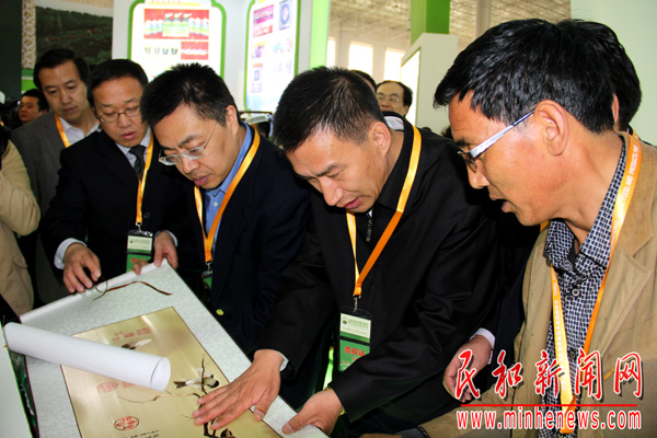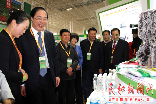 市委书记于丛乐在海东馆参观民和县推介展出的特色产品