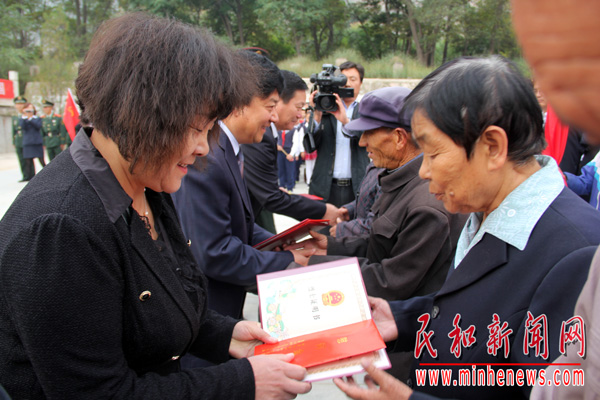 县四大班子领导现场慰问烈士遗属代表,并颁发换发烈士证