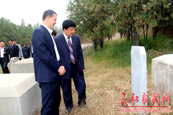 县委书记何延年等县四大班子领导在工作人员的引导下参观烈士陵园