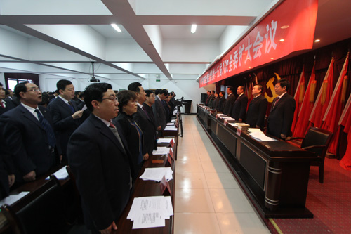 县委十五届八次全委扩大会议开幕,全体起立唱国歌