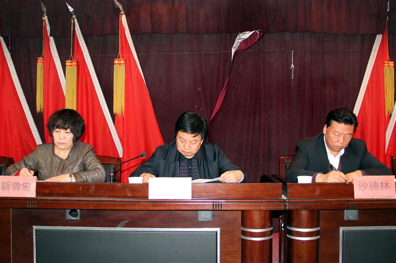 县委书记何延年,县人大常委会主任靳雪宏,县委副书记、县长沙德林,县政协主席李永杰,县委副书记崔鲁辉,县委常委、常务副县长曹良泰,县委常委、政法委书记贺宏伟,县委常委、副县长孙瑞平等领导出席会议。县委常委、宣传部长马玉斓主持会议。