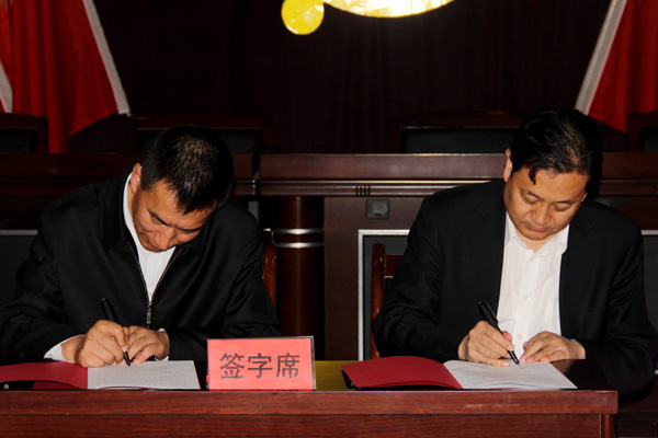 兰州市副市长严志坚和海东市副市长孙德分别代表两市政府签订跨界污染联防联控框架协议