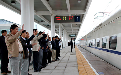 10:48分,D9989次动车专列搭载着609名民和采棉群众的美好愿景从民和南站启程,与会领导与大家挥手送行。