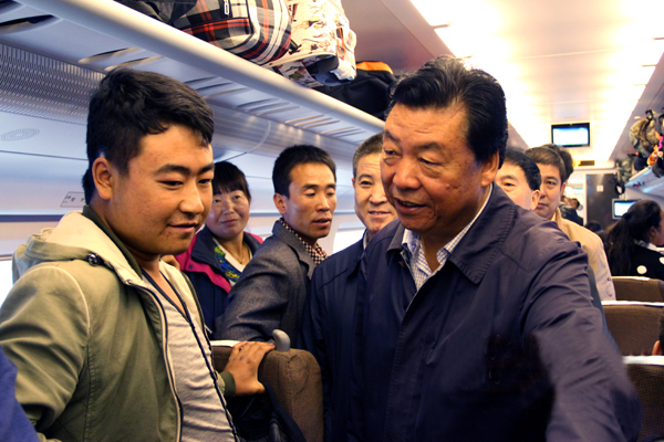省、市、县领导登上列车,与农民工亲切交流亲切