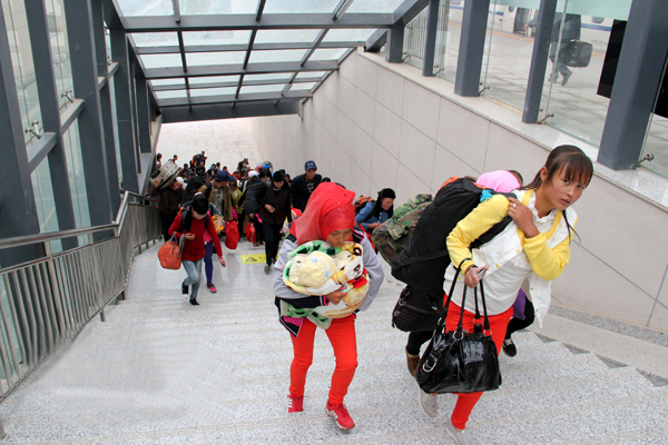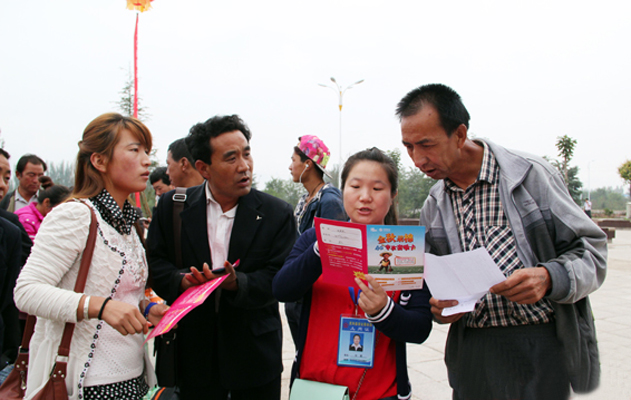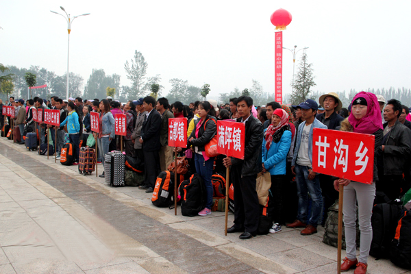 9月9日上午,民和县2015年首批金秋采棉务工人员欢送仪式在高铁民和南站站前广场举行。图为欢送现场。