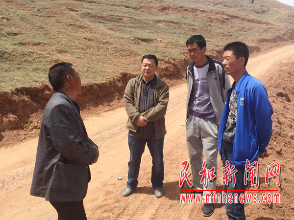 驻村“第一书记”刘三多与驻村干部一道察看硬化路实施情况