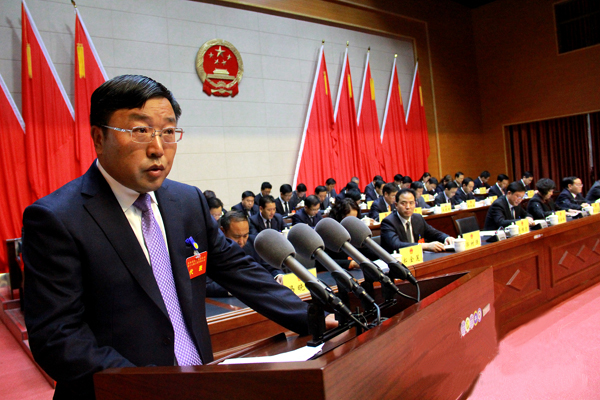在热烈的掌声中,马维忠代表县人民政府向大会作政府工作报告。报告共分三部分:一、过去五年工作回顾;二、“十三五”经济社会发展目标和主要任务;三、切实加强政府自身建设。