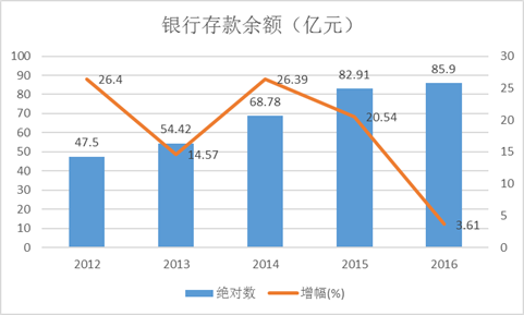 年末全县金融机构各项存款余额85.9亿元,比年初增加2.99亿元,增长3.61 %。其中:个人储蓄存款50.39亿元,比年初增加5.6亿元,增长12.49%;各项金融贷款余额28.29亿元,比年初增加1.81亿元,增长6.85%。