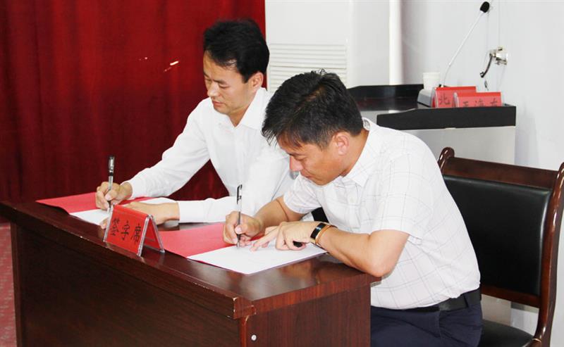 图为县委常委、副县长纳进云代表县政府与乡镇政府签订信访工作目标管理责任书