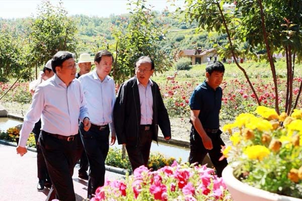 图为在西沟乡南垣牡丹休闲园实地调研