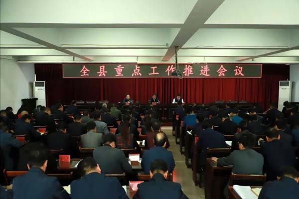 10月8日,县委、县政府召开全县重点工作推进会。县委书记杨海林作讲话,县委副书记、县长马维忠通报并安排全县经济社会发展重点工作,县委副书记李泰业主持会议并通报和部署全县党建暨“不忘初心、牢记使命”主题教育工作。