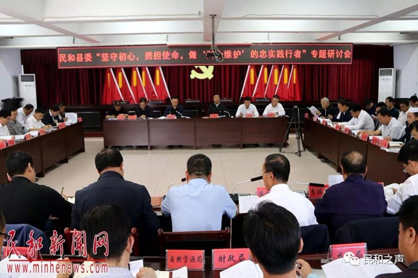 民和新闻网讯(摄影报道\白林娟)9月29日下午,民和县委召开“坚守初心,勇担使命,做‘两个维护’的忠实践行者”专题研讨会。市委主题教育第二巡回指导组组长韩学峰出席会议并讲话,县委副书记、县长马维忠主持会议。会上,县委常委、班子成员依次围绕研讨主题,说收获、谈感悟、摆差距、论打算、谋思路,结合各自思想认识、工作实际作了交流发言。