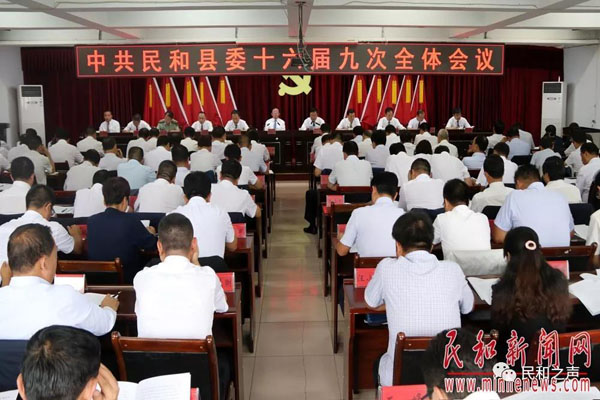 图为中共民和县委十六届九次全体会议召开