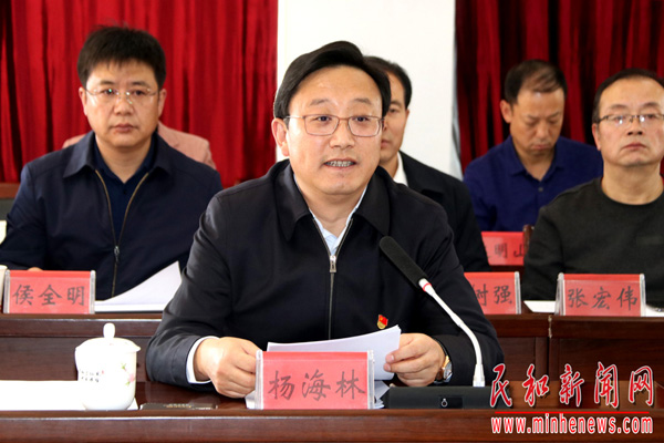 市人大常委会副主任、市第二考核验收组组长王元斌出席会议并讲话,市扶贫开发局局长、市第二考核验收组副组长何林出席会议,县委书记杨海林主持会议。
