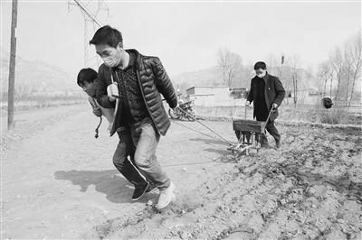走进郭金保元的地块,一家人正忙着撒肥、播种、整地。因为家里没有手扶拖拉机,他们干脆把两轮摩托车开进地里,充当起牵引播种机的“耕牛”。“我家有2.5亩地,今年全部种小麦,这片土地是红土质,如果耕作的土层全部解冻,地里就湿得下不去人了,所以得赶紧种。”郭金保元笑着说。刚从疫情值守点检查完工作的官亭镇党委书记隆学林,匆匆赶到地里,叮嘱他们干完活回家前要消毒。