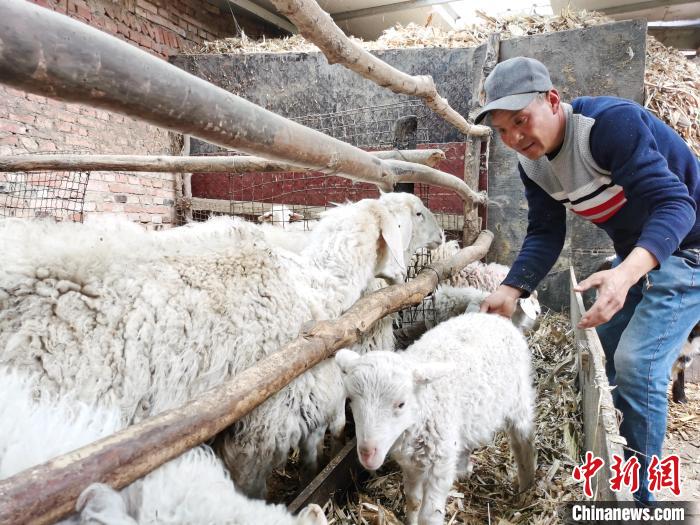 图为青海省民和县核桃庄乡五方村冶廷英养殖牛羊。 张添福 摄
