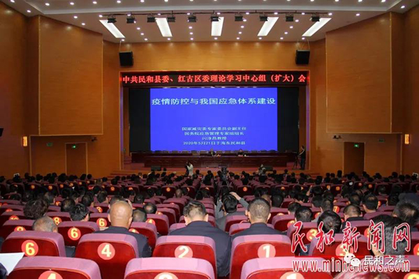民和新闻网讯(摄影报道\马芳)5月21日,民和、红古两县(区)党委理论学习中心组扩大会议(民和大讲堂)在民和召开,特别邀请国家减灾委专家委员会副主任、国务院应急管理专家组组长、国务院参事闪淳昌教授作《疫情防控与我国应急体系建设》专题讲座。民和县委副书记萨尔娜主持会议。