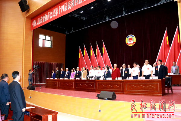 县政协主席朵海生,副主席马菊花、忠、才旦堪布及十四届政协常务委员在主席台前排就座。朵海生主持大会并讲话。