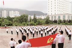 “我志愿加入中国共产党,拥护党的纲领,遵守党的章程……”7月1日8时30分,在海东市民和回族土族自治县政府楼前的广场上,新吸收的99名党员自觉排成整齐的队伍,面对鲜艳的党旗,庄严宣誓。