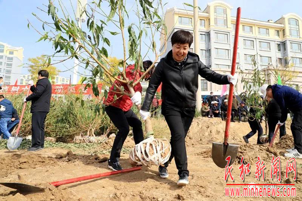 植树造林,功在当代、利在千秋。在“大会战”首日,县级领导、县直机关干部、宗教人士代表、环卫职工代表、工商界代表、学生代表、医护人员代表、公检法司代表以及川口、北山两乡镇的乡镇的干部群众代表等千余人参加了县城地区的义务植树“大会战”,各乡镇、企业等同步拉开秋季义务植树造林的序曲。今年76岁的马元成老人是川口镇米拉湾村村民,也是米拉湾清真寺的宗教人士,他已经连续四年参加了县上组织的义务植树造林活动。他说,近些年来,民和县每年种树绿化,环境美了,空气好了,特别是高速公路出口、麻荒滩、原来的镁厂区都进行了种草种树,与前几年相比,简直就是两种模样,所以植树造林是一个造福后代的好事情,我们非常赞同,也非常支持,也希望政府一直抓下去,让我们的民和变的越来越美。北山乡德兴村贫困户安旭冬搬进县城“新家”后第一次参加了义务植树活动,他感慨道,从山里搬到山下,从农村搬进城里,大家的生活变得越来越好,今天很高兴在自家门口参加义务植树活动,今后要积极参加党和政府组织的植树活动,为家乡的生态建设尽自己的一份力量。