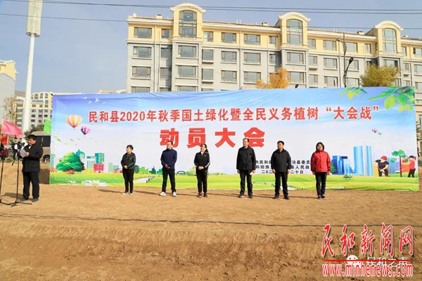 民和新闻网讯10月20日上午,我县2020年秋季国土绿化暨义务植树造林“大会战”动员大会在史纳安置区滨河路西段的湟水河岸举行,大会贯彻落实习近平总书记关于青海工作“四个扎扎实实”重大要求和“三个最大”省情定位,全面贯彻执行《海东市全民义务植树条例》,迅速掀起义务植树高潮,加快国土绿化,推进“绿屏障、绿河谷、绿城市”建设。