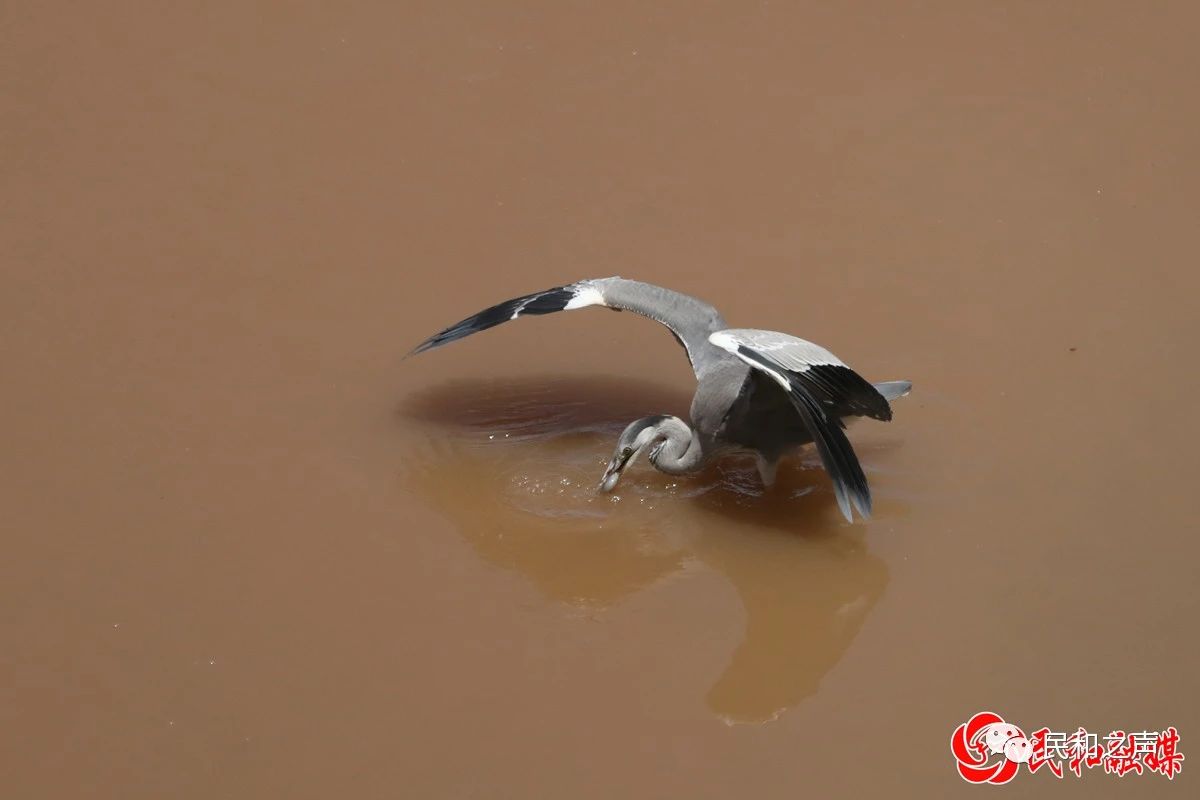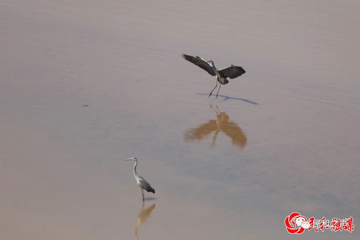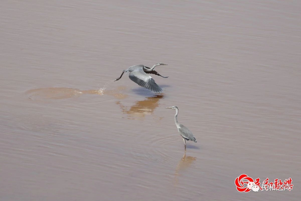 近日,在湟水河民和回族土族自治县川海大桥附近水域拍摄苍鹭、池鹭等鸟类,它们或歇息,或觅食,或戏水,或展翅飞翔,为湟水河增添了鸟水和谐的生态新景象。