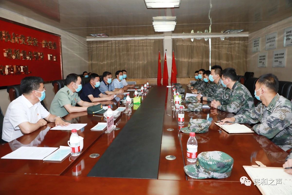 图为县委书记毛学鸿一行慰问驻地某部队官兵并与官兵代表座谈