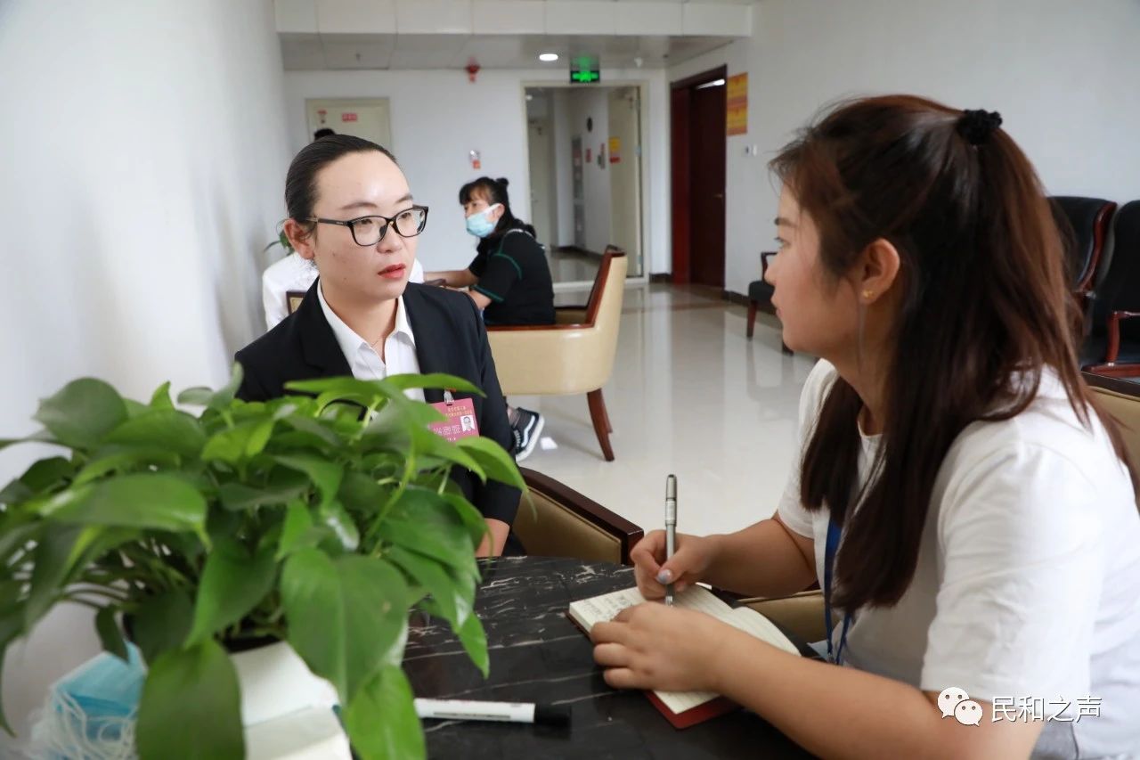 图为海东日报记者采访市人大代表、民和县孝康养老服务中心的负责人李晶