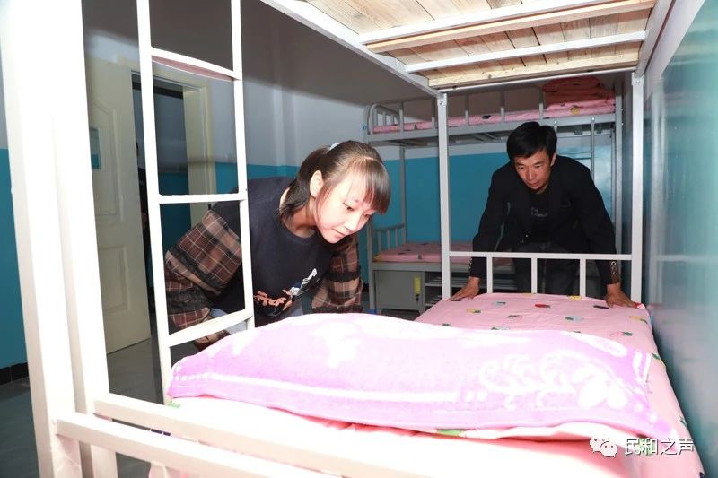 走进一个宿舍,转导乡忠孝村赵福德正忙着帮女儿赵庆兄收拾床铺,对宿舍条件表示很满意。他说,女儿原本想着到一中或二中读高中,却收到了民和城西高中的录取通知书,当时心里很纠结,后来陪女儿专程到学校看了一下,优越的校园环境条件,让心里的“疙瘩”全部解散了。赵庆兄说,她要好好学习,绝不辜负爸爸妈妈和老师的期望。