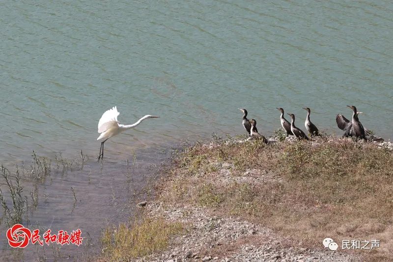 古鄯水库的生态画影,只是民和县生态环境持续向好的一个缩影。近年来,民和回族土族自治县牢固树立“绿水青山就是金山银山”理念,坚定不移推进生态环境治理,黄河、湟水流域持续向好的水生态环境吸引天鹅、鹭鸟、鸬鹚等多种珍禽水鸟落足栖息或捕食戏水。