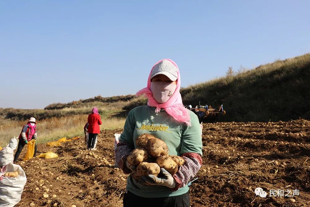 “每天一百元的工钱,主要对拖拉机挖出来的洋芋进行分拣,黄色袋子里要装个头圆润,坑窝要多一点利于发芽。白色袋子要装个头大的进行销售,最小的土豆要分拣上去运送到民和威思顿精淀粉有限责任公司进行再加工”工人赵柳花说到。