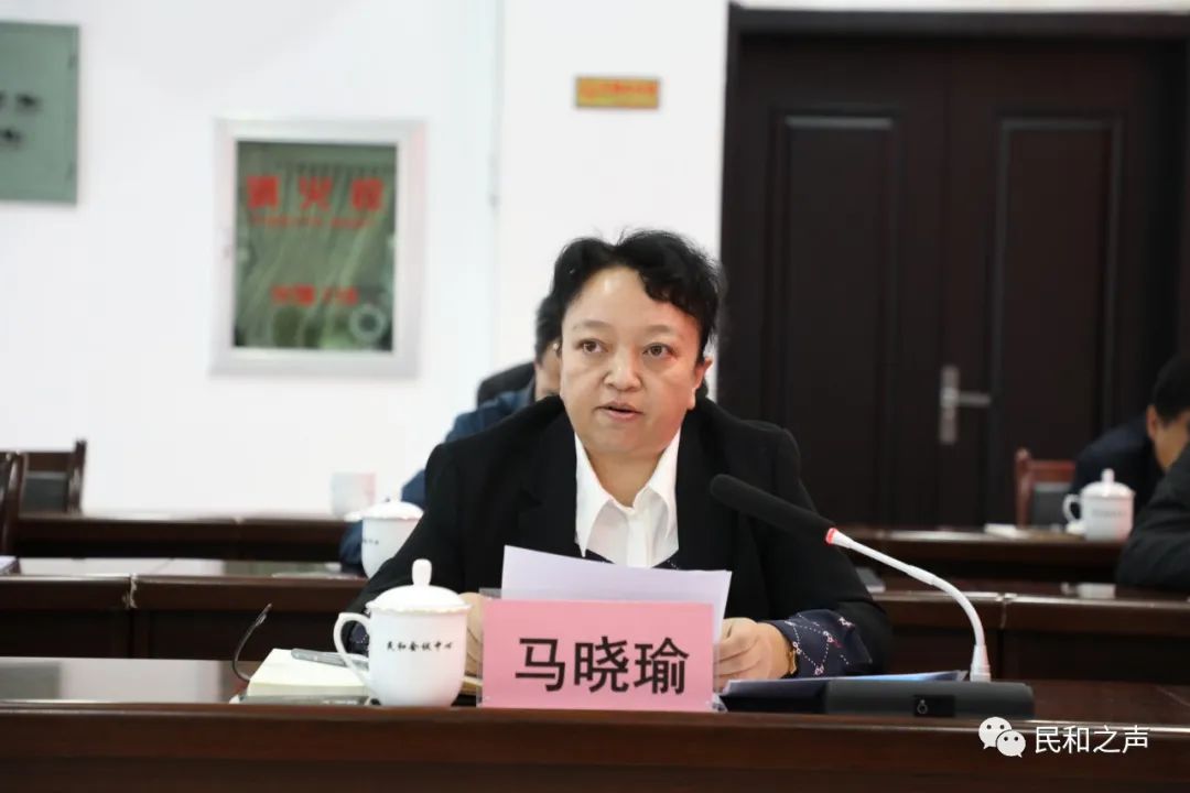 图为民和县委副书记、县长马晓瑜汇报民和县巩固拓展脱贫攻坚成果同乡村振兴有效衔接工作开展情况