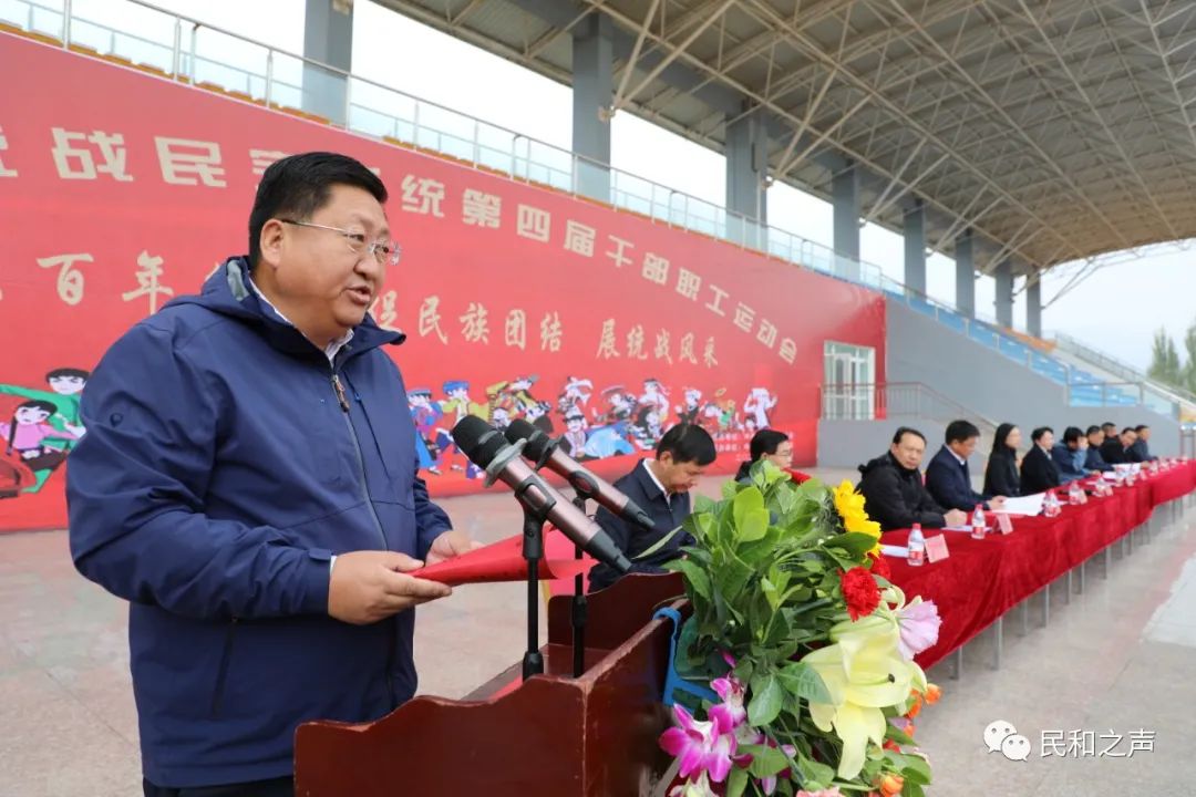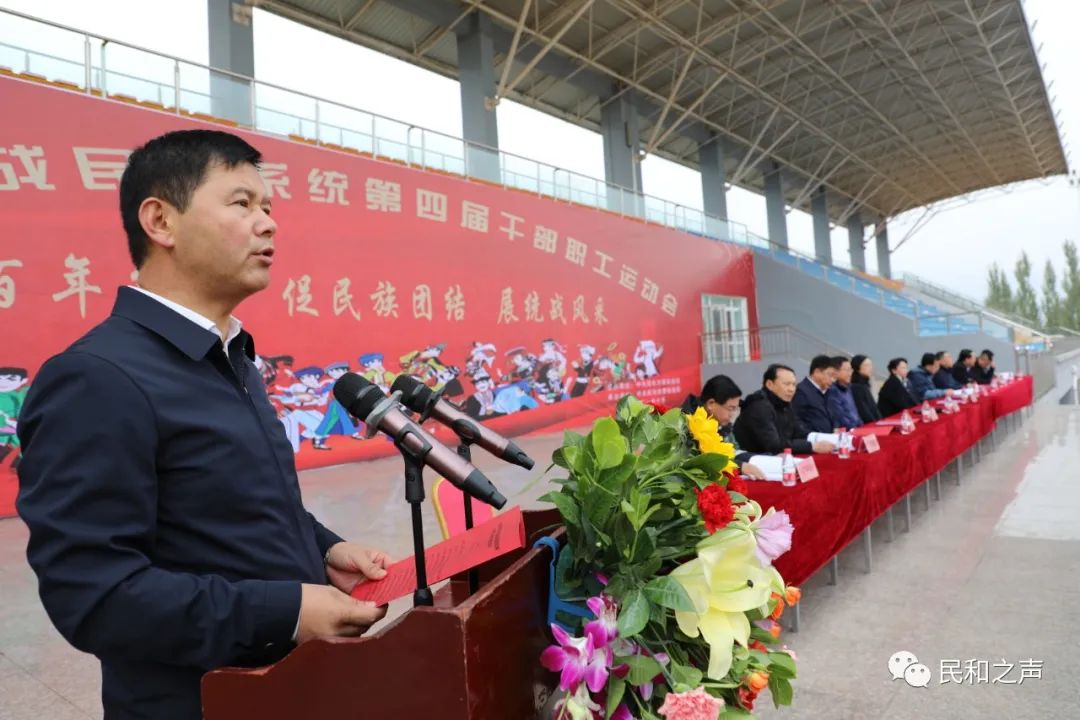 10月16日,海东市统战民宗系统第四届民族团结杯干部职工运动会在民和县第一中学体育场举行开幕仪式。海东市委常委、统战部部长袁波宣布海东市统战民宗系统第四届民族团结杯干部职工运动会开幕,海东市委统战部常务副部长、市民宗委主任杨华致开幕辞,民和县委副书记、县长马晓瑜参加开幕式,民和县委副书记侯全明致开幕式欢迎词,民和县委常委、统战部部长冶成林主持开幕式。