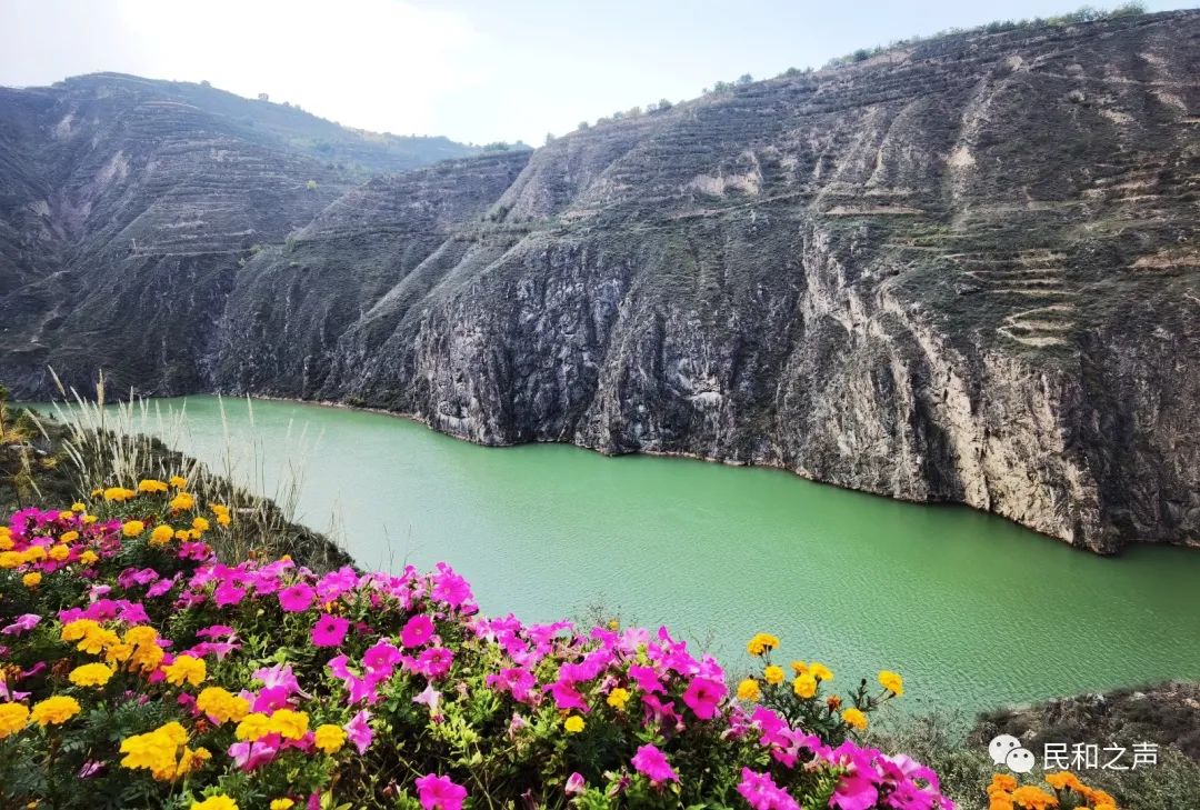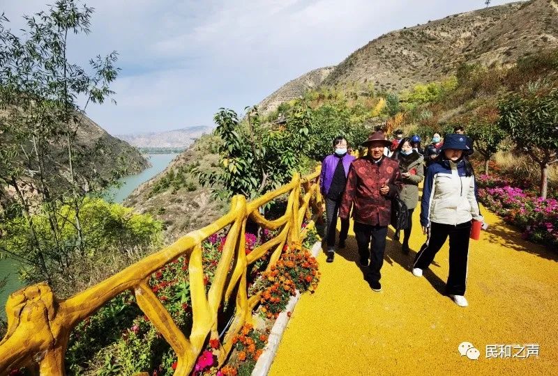 10月17日“母亲河畔的中国”网络主题宣传活动青海境内采访团来到了海东市民和回族土族自治县中川乡黄河大峡谷禹王峡。当地群众流传着这样一句话“禹王峡水碧如玉,只因白水天上来”,走在禹王山景区的峡谷中,你能深切地感受到这种意境,身边百尺悬崖之下蜿蜒的黄河水平静深邃犹如一块碧绿的美玉镶嵌在峡谷之中,而另一侧的山上各种树木花草覆盖着这座大山,呈现在眼前的是一幅高原山水自然景观。同时,这里也是黄河流出青海的地方。