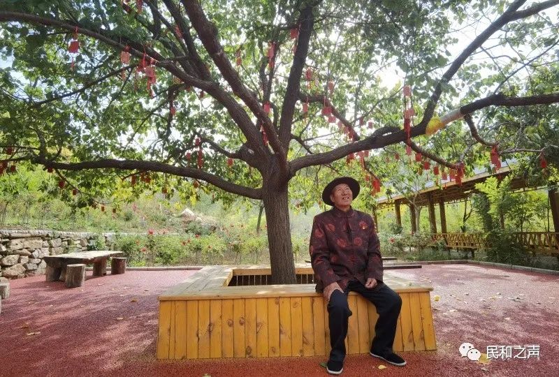 随后,马进才带着采风团的记者们又一次来到27年前他种下的那棵山杏树前,当年的小树苗已经长成了一棵枝繁叶茂的大树。在树下老人用手抚摸着这棵树,就像是抚摸着自己亲手拉扯大的孩子,眼中依然闪烁着熠熠光辉······