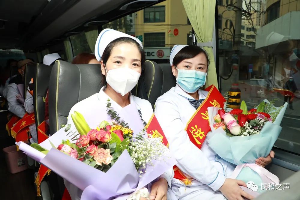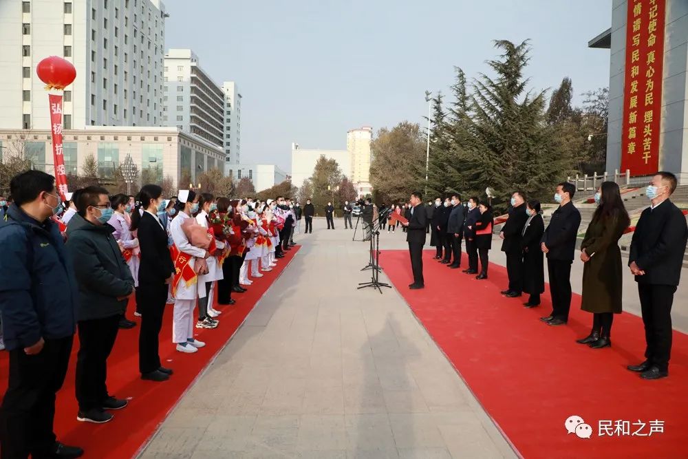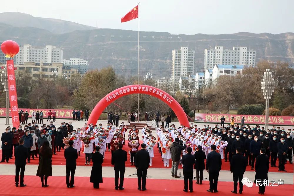 11月16日,民和回族土族自治县驰援平安、西宁抗击新冠感染疫情的79名医疗队员圆满完成核酸检测等各项驰援任务并主动接受14天集中健康监测后“回家”。县委、县政府隆重举行欢迎仪式,以最高礼遇迎接医疗队员凯旋,并为他们颁发证书。
