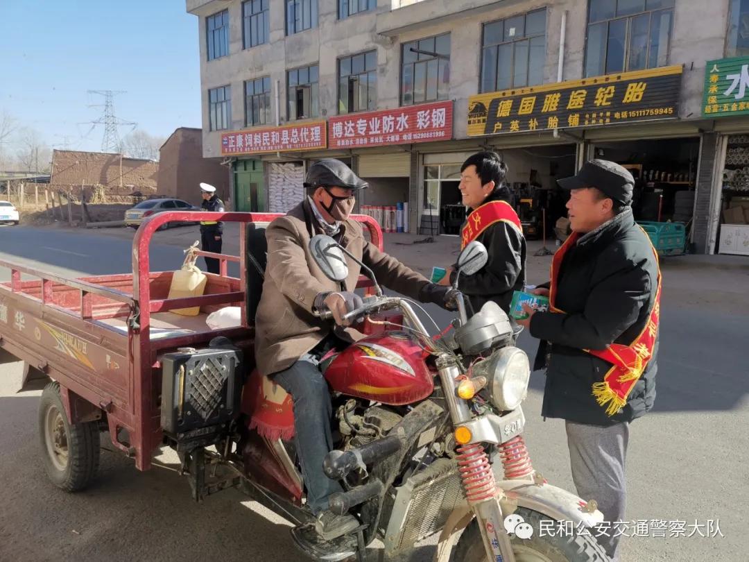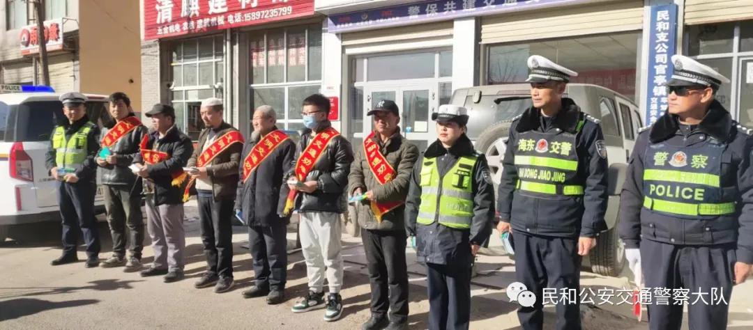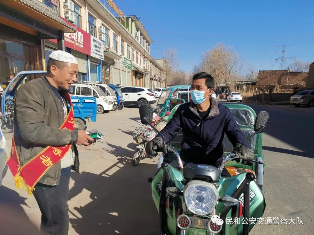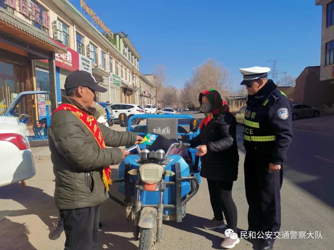 为进一步加强农村道路交通管理工作,切实提高农村驾驶人及村民交通安全意识、法律意识和文明出行意识,有效预防和减少道路交通事故的发生。近日,民和县公安局交警大队联合海东市公安局交警支队,依托农村交通安全劝导站,携手农村交通安全劝导员深入辖区官亭镇利用土汉双语开展交通安全宣传劝导活动。