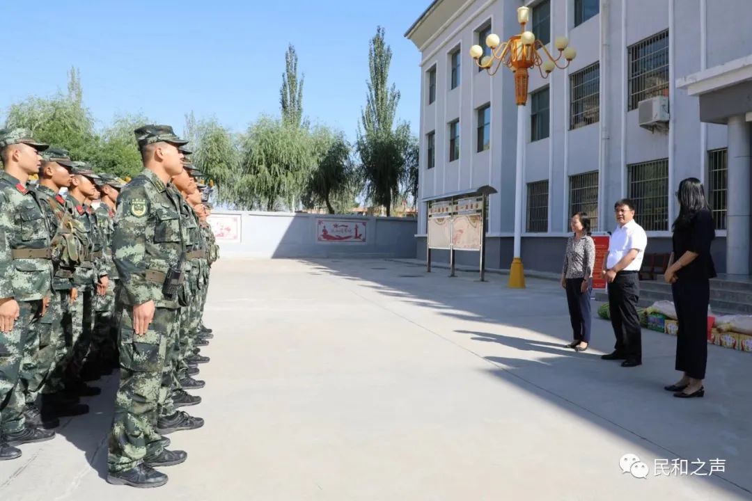 图为马玉斓、侯全明等县领导在县武警中队进行慰问