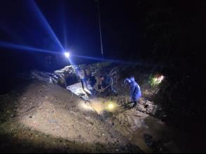 在向阳村一、二、三、四社有4个涝池,因强降雨影响涝池水位不断上涨,涝池没有泄洪口,危机向阳、农场、草滩等村群众的生命财产安全及600余亩耕地,唯一的办法是用排水泵由内向外抽水,面对危机他果断决策,带领村“两委”成员及时加装两台水泵抽水排涝,连续九个夜晚基本上亲自蹲点值守抽水,现水已全部排完。为应对未知的突发情况,他紧急召集村里年轻党员、志愿者和群众组建突击队,分为汛情监测、预警动员和紧急安置3个小组,白天带领党员群众抢修损毁道路、隐患点排查等工作。