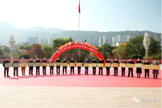 10月21日上午,民和县举行疫情防控爱心捐赠仪式,并为爱心捐款助力全县疫情防控的企业颁授“爱心企业”荣誉奖牌。