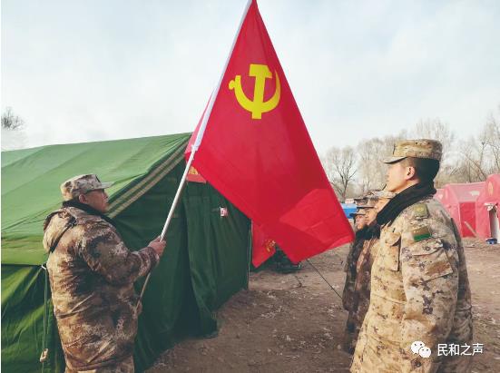 民和县人民武装部政委李卫国向记者介绍,地震发生后,民和县军分区、人武部迅速成立临时党支部和3个党小组,通过开展小动员、小表扬、小讲评和“火线”入党等方式,激励官兵奋勇当先、勇挑重担。