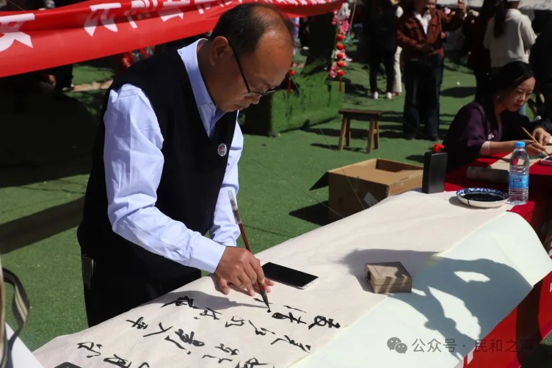 而在舞台之外,露营休闲区的八宝盖碗茶、酿皮、甜醅等吸引着游客边品尝美食边观看文艺演出,恰逢“4·15”全民国家安全教育日,省市县相关部门也把宣传带到了活动现场,摄影展、书画展在梨树园里呈现别样氛围,由县农业农村局优选出的五家优质农产品生产企业为这场春日盛会注入了独特的农业魅力。