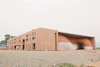一馆即喇家遗址博物馆。博物馆内将存放喇家遗址出土的各种文物,以及放置考古研究中心,并计划今后将民和县博物馆迁至喇家国家考古遗址公园。博物馆主入口的曲墙体现黄河水汹涌波涛的气势,旋涡式的主入口具有强烈的空间引导性,展厅长条天窗的设置和地震概念相契合,主要体现黄河灾难性遗址。