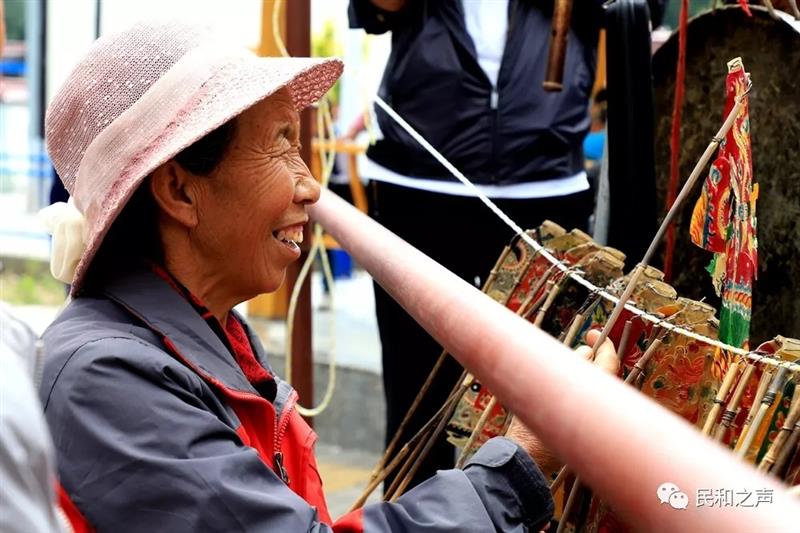 由于皮影戏之类的传统文化艺术在民和地区很少见到,所以,当天的两场演出也吸引了不少观众。在演出现场,有的观众聚精会神看表演、听台词,有的观众一会儿幕前看表演,一会儿幕后看操作,显得十分好奇。在松树乡牙合村表演现场,一位老人从演出操作后台的绳架上取下一个悬挂的“小人”道具,小心触摸,仔细打量,似乎有些爱不释手。