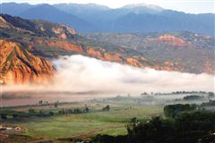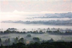 雨后初晴的清晨居高而望,林木葱茏的三川大地烟云笼罩,如梦如幻,美不胜收。夕阳西下,晚霞夕照下的滔滔黄河水金波荡漾,渲染出一幅“谁持彩笔染长空,几处深黄几处红”的绝美画境。